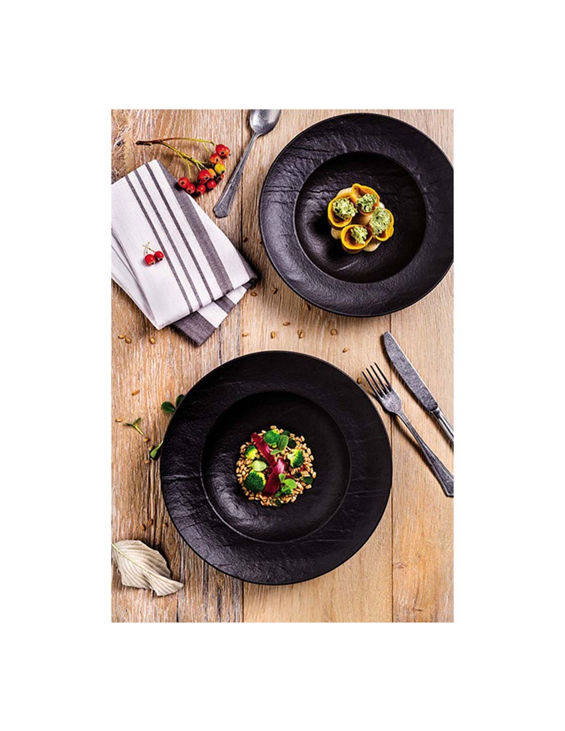 Pasta tanjir Vulcania Black prečnika 29 cm je savršen izbor za serviranje omiljenih pasta jela, ali i drugih obroka koji zaslužuju da budu u centru pažnje. Izrađen od visokokvalitetnog porcelana, ovaj tanjir se izdvaja svojom jedinstvenom crnom bojom i reljefnom teksturom, koja mu daje dodatnu dimenziju i luksuzan izgled.